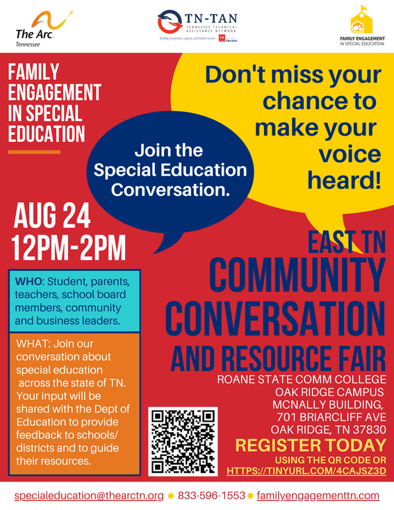 NAMI Oak Ridge Anderson County will participate in the East TN Regional Special Education Family Resource and Fun Day hosted by The Arc TN Family Engagement Project and Roane State Community College!